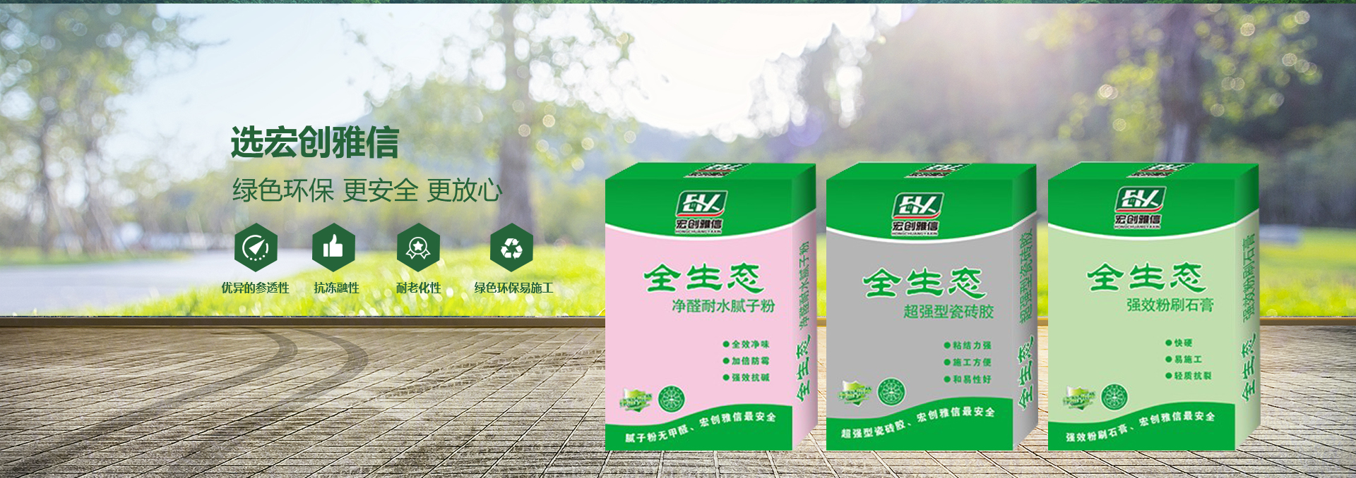 宏創(chuàng)雅信裝飾材料北京有限公司(威海分公司)是一家生產(chǎn),研發(fā),運輸,施工綜合性股份制企業(yè),主要產(chǎn)品:快粘粉、嵌縫石膏、內(nèi)外墻耐水膩子粉、內(nèi)墻超細(xì)膩子粉、高強石膏、粉刷石膏、瓷磚粘接劑、填縫劑、內(nèi)外墻防水涂料、108膠、聚合物粘接砂漿、聚合物抗裂抹面砂漿、灰鈣、重質(zhì)碳酸鈣、砌筑砂漿、膠粉聚苯顆粒、浮雕骨料、?;⒅楸厣皾{、FTC相變節(jié)能保溫砂漿、SF增水保溫砂漿、等產(chǎn)品。